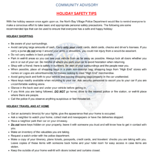 ✨ HOLIDAY SAFETY TIPS ✨ As we enter the holiday season, the North Bay Village...