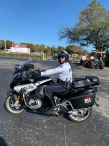 Police Motorcycle unit Officer Norlan Benitez on white and blue police motorcylce uniform on the police motorcycle on a parking lotBy johnny / February 11, 2021